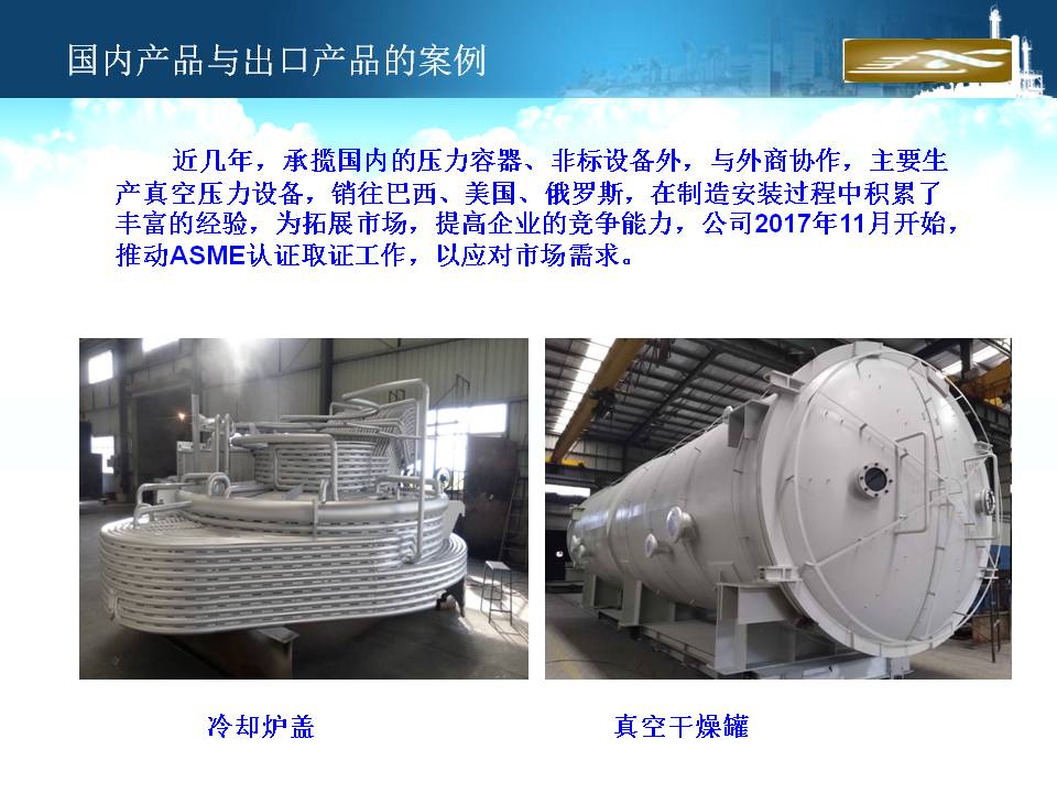 廈門隆興化工機(jī)械有限公司成立于2001年5月,占地面積30000平方米,擁有生產(chǎn)車間面積10000平方米及相關(guān)配套的辦公場(chǎng)所3000平方米,其中下料場(chǎng)所1000平方米,不銹鋼制作場(chǎng)所2000平方米,ASME產(chǎn)品制作區(qū)域1200平方米,無(wú)損曝光室30平方米。公司有職工135人,擁有專業(yè)的技術(shù)人員和管理人員36人。公司主要從事設(shè)計(jì)、制造A2級(jí)覆蓋D類壓力容器...